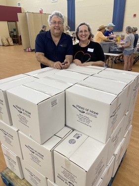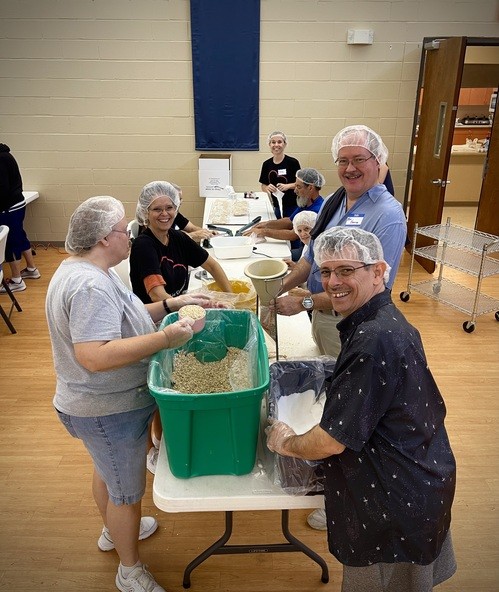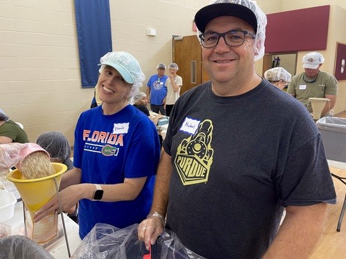 Members of Abiding Savior join with members of the community for a fun morning of packing meals to be distributed to those in the Gainesville area and beyond!